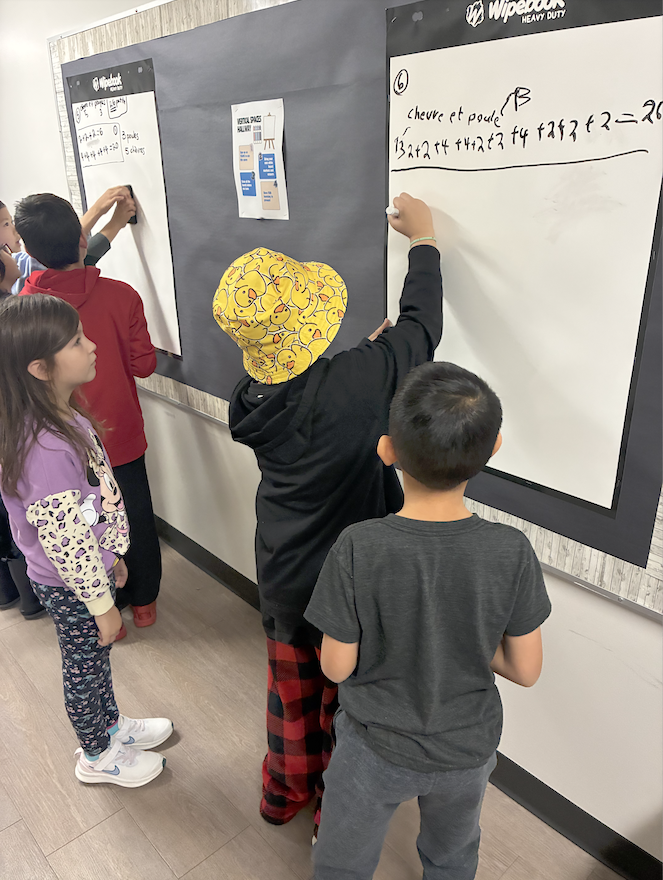 In September, Mitchell staff participated in a pro-d at Bridge Elementary around the topic of numeracy. During this workshop, we had the opportunity to engage in fun Math activities, using vertical spaces (white boards). This inspired our staff to create a special space in one of our hallways that is dedicated to vertical learning! This type of learning increases student engagement, enhances collaborative work and allows for movement. We have been very encouraged watching classes hard at work in this space!